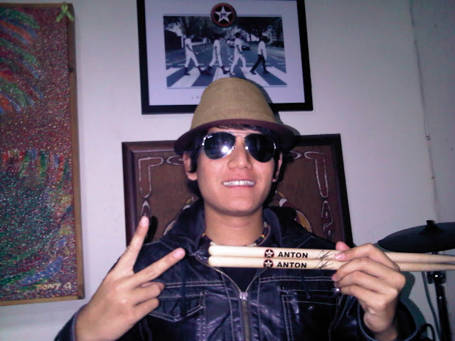 1 buah topi dan sepasang stick drum dari Anton